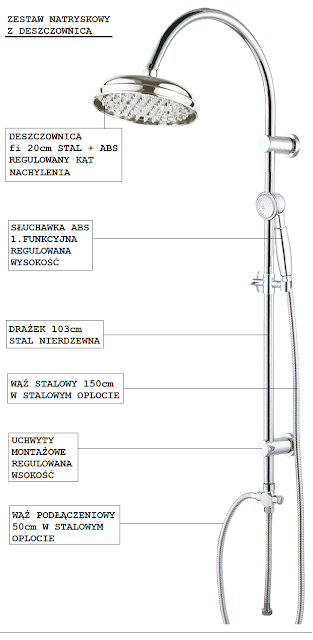 Ten zestaw ma jedną wadę: słuchawkę prysznicową, która ma małą średnicę sitka (jak dla nas) i rączka jest chromowana, a nie biała. Dokupię więc w niedalekiej przyszłości takie coś: